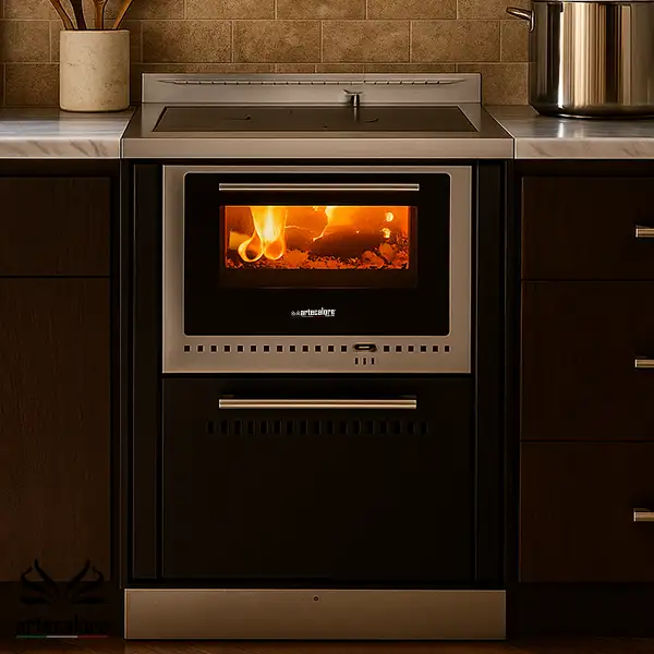 Si vous n’avez pas besoin de four, choisissez la version sans four : celui-ci est remplacé par un grand tiroir à bois, pour un style et un usage proches d’un poêle traditionnel.