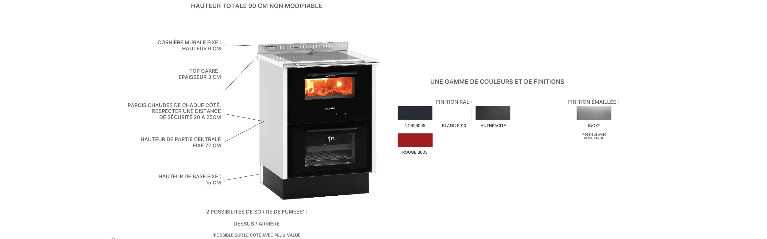 Avec ses dimensions généreuses et sa robustesse affirmée, la RX EVO 85 est pensée pour chauffer et cuisiner avec intensité. Un modèle idéal pour ceux qui recherchent la puissance et la convivialité d’une vraie cuisinière de tradition revisitée.