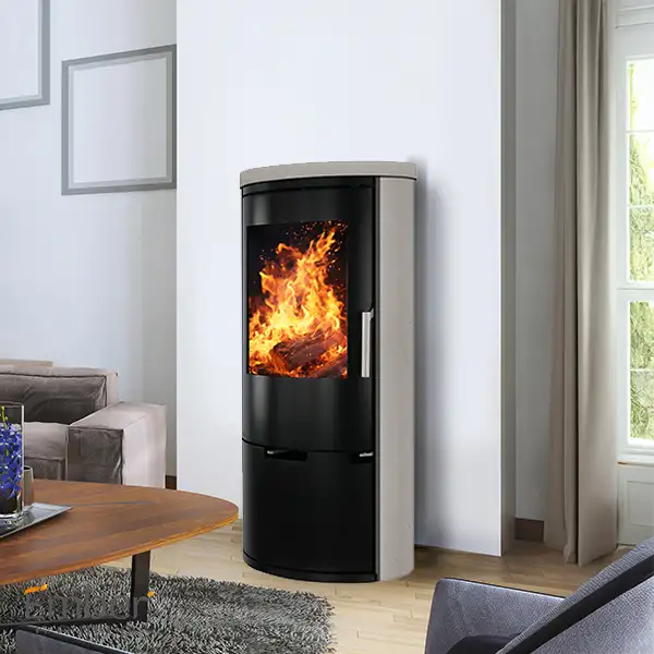 Le poêle E14 Ember Kamin avec son revêtement en pierre calcaire séduit par son design ovale élégant, caractéristique de la gamme Ember. Symbole de qualité, ce modèle allie esthétique et construction soignée. Sa conception étanche et adaptable en fait un choix idéal pour les habitations modernes. Revêtu d’acier, il est disponible dans des finitions en serpentine ou en pierre calcaire naturelle, offrant ainsi une variété d’options pour s’adapter à différents styles. De plus, il est doté d’une niche pratique pour stocker le bois.