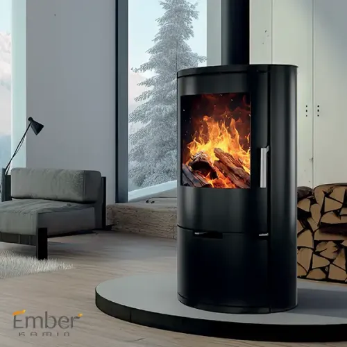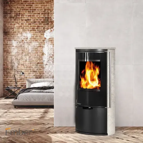Le EMBER O2 VS ROUND SIDES habillé en pierre Ollaire Ember Kamin est compatible avec un accumulateur de chaleur en option, augmentant ainsi considérablement son efficacité et son inertie thermique. Ce poêle offre une vue magnifique sur les flammes, ajoutant une touche chaleureuse à votre espace. Il peut être aisément raccordé à un circuit d’air extérieur pour une performance optimale. Disponible en version tout acier ou orné d’un superbe habillage en pierre ollaire ou en calcaire, ce poêle se distingue par son esthétique versatile et sa capacité à s’intégrer harmonieusement à différents décors.