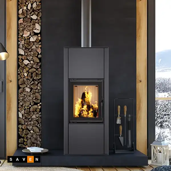 Le poêle à bois SAVEN Vatra 40×50 ÉCO est un poêle en acier moderne fabriqué à l’aide d’une technologie européenne avancée et de matériaux certifiés. Son design épuré et minimaliste s’intègre facilement dans n’importe quel intérieur.